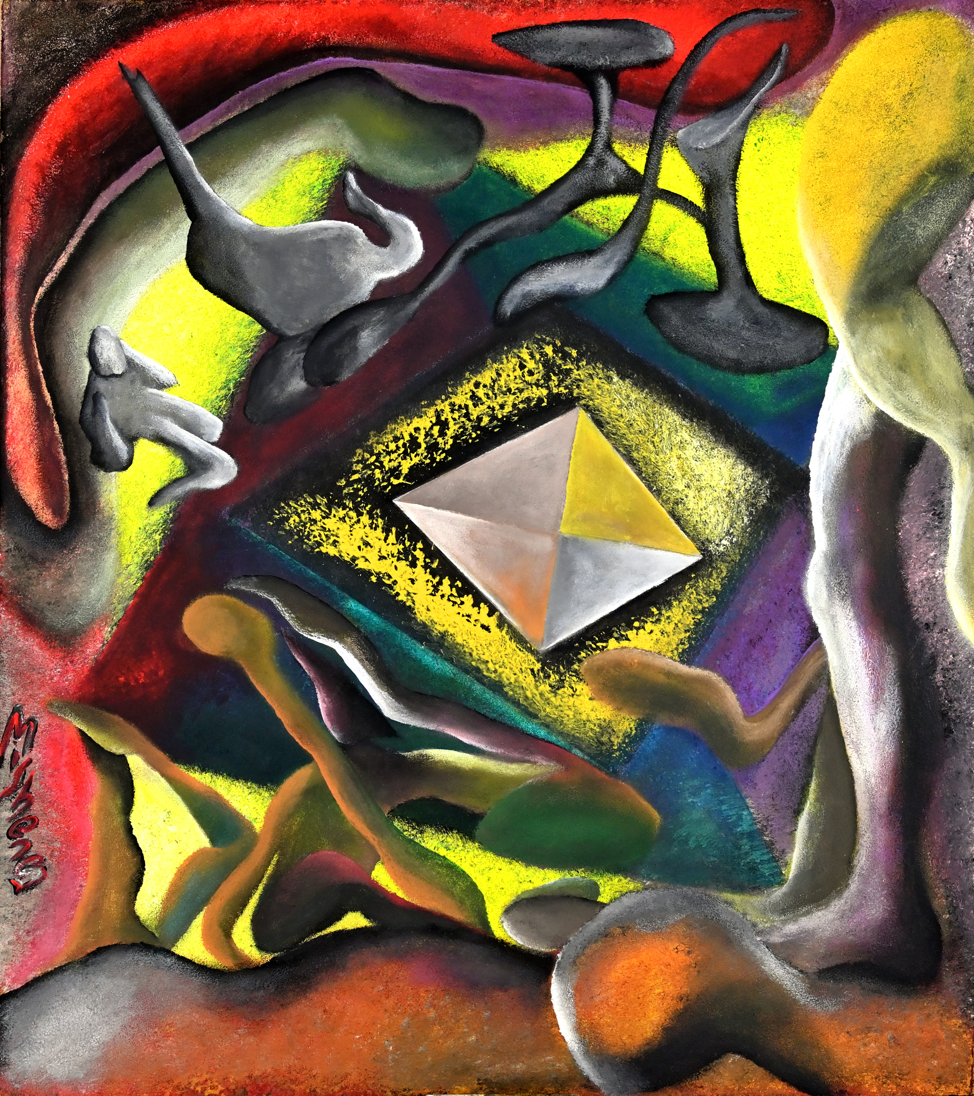 Картина выполнена на листе из фиброволокна. Подпись на лицевой стороне, название, дата, техника, размер — на обратной стороне.