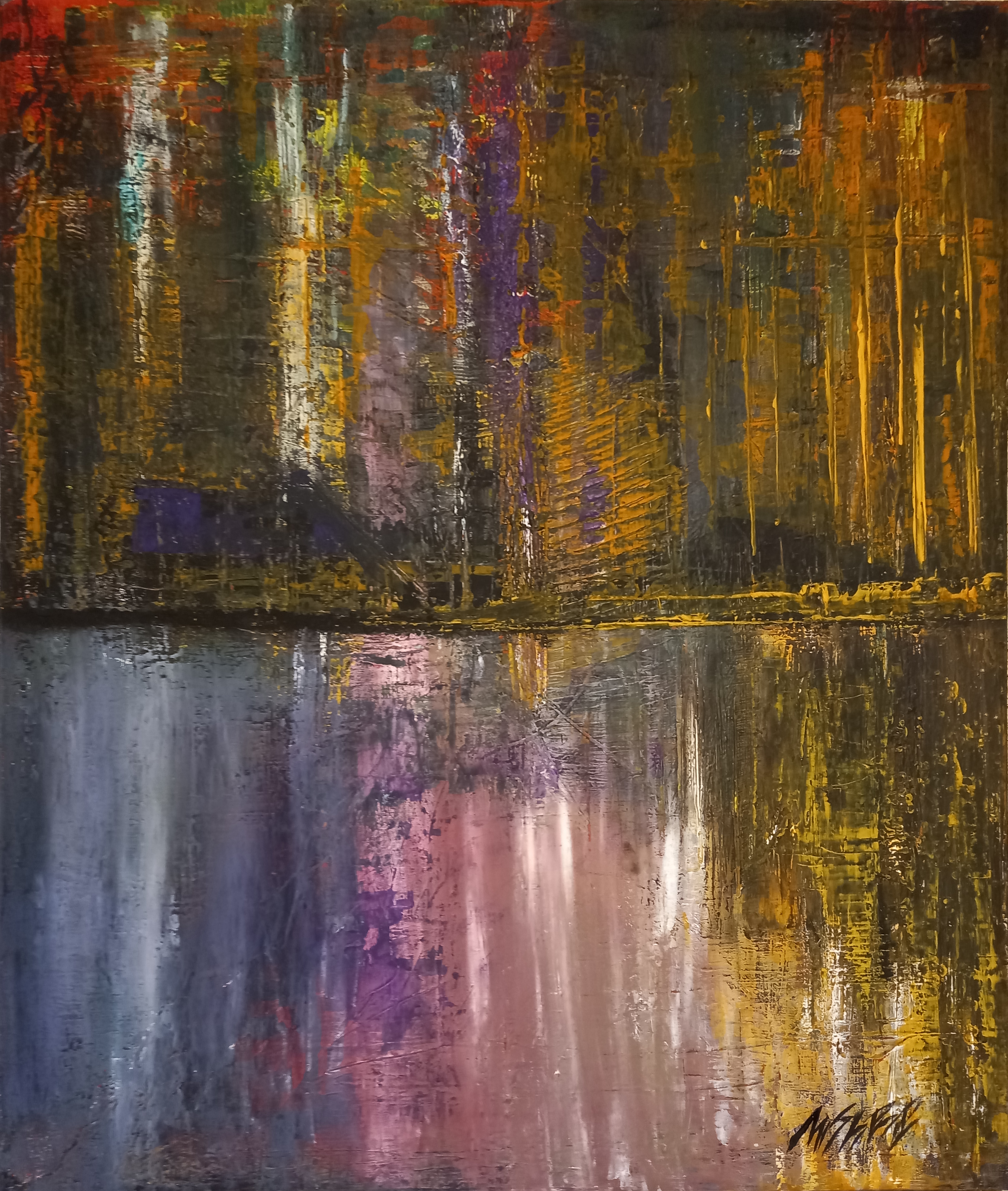 Картина выполнена на льняном холсте. На лицевой стороне находится подпись, на обратной стороне — название, год создания, техника и размер.