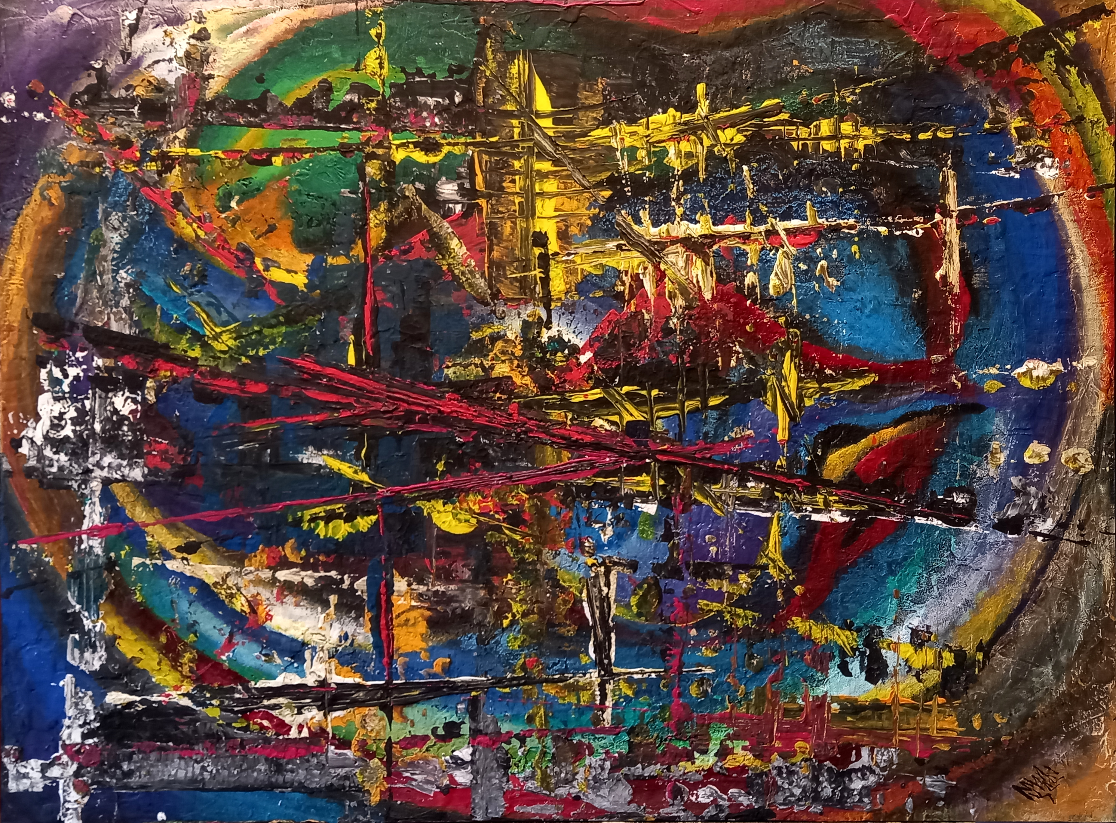Картина выполнена на листе фиброборда с прикрепленной подрамкой. На лицевой стороне находится подпись, на обратной — название картины, год создания, техника и размер.
