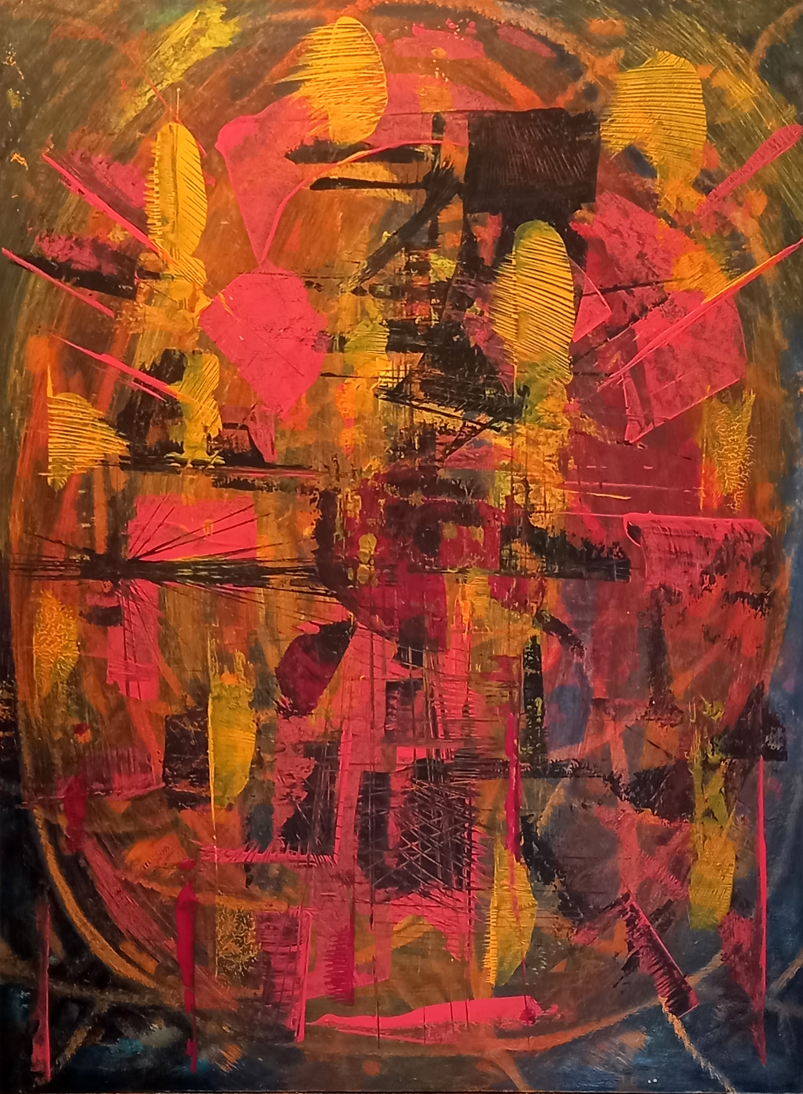Картина выполнена на листе фиброборда с прикрепленной подрамкой. На лицевой стороне находится подпись, на обратной стороне — название картины, год создания, техника и размер.