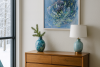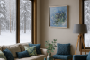 Картина «Вдруг начинаю чувствовать себя» выполнена в технике микс-медиа арт. Нежные переходы голубого, бирюзового, синего и белого цветов создают спокойную и вдохновляющую палитру пейзажа.