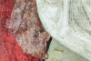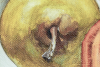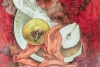 Центральный образ — груша на пике спелости, прямо сейчас можно почувствовать ее сочную тяжесть, но уже завтра она начнет увядать. Груша - символ сиюминутного счастья, не успеешь оглянуться, как его уже нет. Символы прошлого: древняя фреска, античное блюдо и ткань, напоминающая римскую тогу, — все это следы той цивилизации, которой давно нет. Изображение на заднем плане — реплика подлинной росписи виллы «Мистерий» (Помпеи).