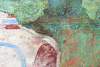 На заднем фоне – реплики античных фресок из дворца царя Миноса в Кноссе: голубая обезьяна — символ метаморфоз и жажды перемен и кувшин, хранящий тайны тысячелетий. Эти материальные свидетельства с острова Крит — вещественные следы великой, но ушедшей цивилизации.