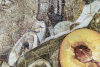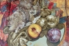 Композиция раскрывает неумолимость течения времени. Внимание зрителя привлекает блюдо со сливами. Одни плоды — спелые, сочные, с солнечными бликами на кожуре — символ полноты жизни, ярких красок настоящего. Рядом — плоды, превращённые художницей в тени, готовые исчезнуть в небытие — знак неотвратимости упадка и забвения. Складки ткани то приоткрывают, то скрывают изображение маски вождя и фресок с танцующими индейцами майя. Проведя рукой по холсту, можно почувствовать шрамы времени.