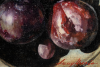 «Симфония цвета» — картина, где чистота и насыщенность красок складываются в гармоничное звучание, подобное музыкальному аккорду. Вид сверху открывает композицию из спелых слив и винограда, покоящихся на глади светлой глазури. Солнечные блики ложатся на упругую плоть, а глубокие тени подчёркивают безупречный глянец кожицы, делая её почти осязаемой. Прозрачные слои краски то вспыхивают сочностью, то тают в летнем мареве, напоминая об ускользающей красоте момента.