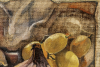 «Плоды воспоминаний» — натюрморт, сотканный из воздуха и света. Сочный инжир чуть помят, будто только что сорван и вот-вот лопнет от спелости. Кисть янтарного винограда светится, напоенная средиземноморским солнцем. Выцветшая серая ткань напоминает стену старой итальянской виллы. Сквозь сочный цвет проявляются размытые контуры, подобно утреннему туману, который оставляет от плодов лета лишь смутное воспоминание.