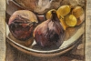 “Fruits of Memory” is a still life woven from air and light. The juicy figs are slightly bruised, as if they have just been picked and are about to burst with ripeness. A bunch of amber grapes glows, saturated with the Mediterranean sun. The faded gray fabric resembles the wall of an old Italian villa. Blurred contours appear through the juicy color, like morning fog, leaving only a vague memory of the fruits of summer.