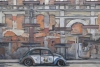 Painter was impressed by the old house of the 19th century in the center of the city, which once had trading shops, and even acted in films. It was rebuilt many times, ready for restoration and its walls are a picturesque texture of the layering of the time. The retro car in the foreground is selected the same way.