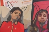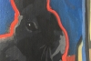 Opposite the observer sits and thinks something about these girls. And a big black rabbit is sitting next to it. Maybe the bunny is a girls' dream or an observer's fantasy.