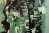 Вместо традиционного для нуара контраста черного и белого, Пьянов использует сдержанную, но сложную цветовую палитру, основанную на оттенках зеленого, мятного и черного. Эти цвета нанесены широкими, энергичными мазками, создавая эффект помех, шума или плотной, влажной тени.