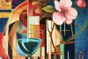 Натюрморт, цветы, абстракция, рюмка, яблоко
