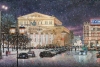 Razzhivin masterfully conveys the texture of the building, playing with warm shades of the facade and the cold violet-blue night sky. The falling snowflakes, painted with small bright strokes, seem to enliven the space, making it dynamic. The city bustle — cars below and silhouettes of passersby — does not disturb the majestic calm of the theatre but only emphasizes its status as a symbol of culture. The painting is filled with light and pride, inviting the viewer to feel the scale of the event and the grandeur of the architecture, timeless and enduring.