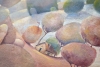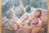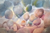 In this piece, I gently tried to combine surreal forms with a very earthly feeling of home, like a scene from a kind children’s fairy tale. Here, the mountains look like soft balls, the trees — like pink clouds, and the little house hides in the center of this kind dream.