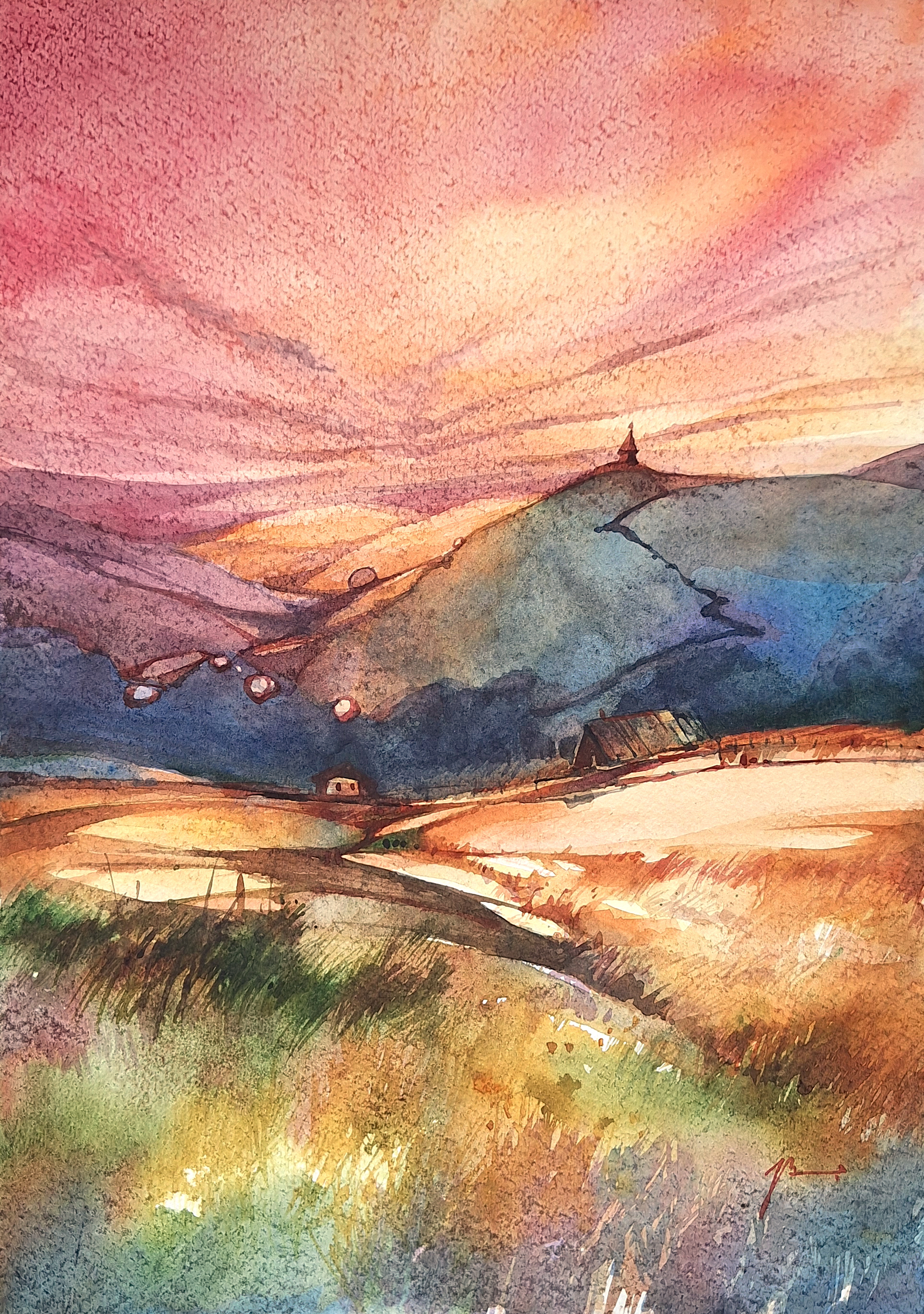 «Часовня» — не изображение здания. Это попытка уловить сущность места, которое пережило века: хрупкое, но непоколебимое, скромное, но значимое. Тихий свидетель истории, где каждый камень хранит память о людях, прошедших мимо, о молитвах, о бурях и затишьях. Часовня — крошечная точка в композиции — напоминает: даже самое малое может стать опорой для целого мира.