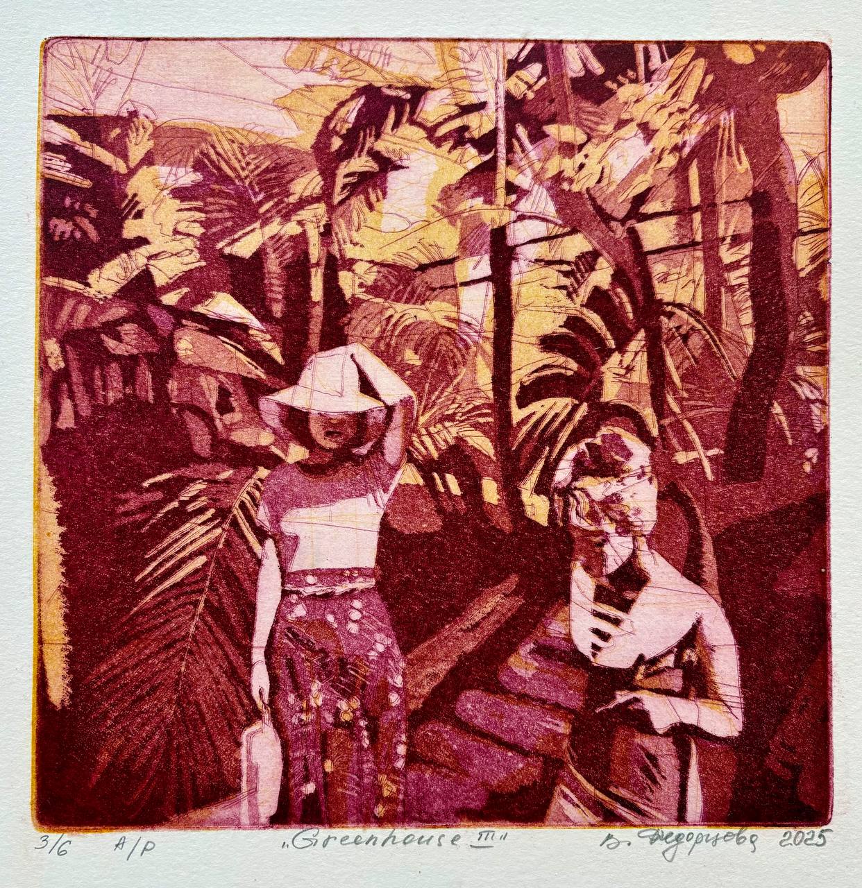 Серия Greenhouse (Оранжерея) — о памяти, ностальгии, связи. Это меланхоличные образы в графике оранжерейных растений.