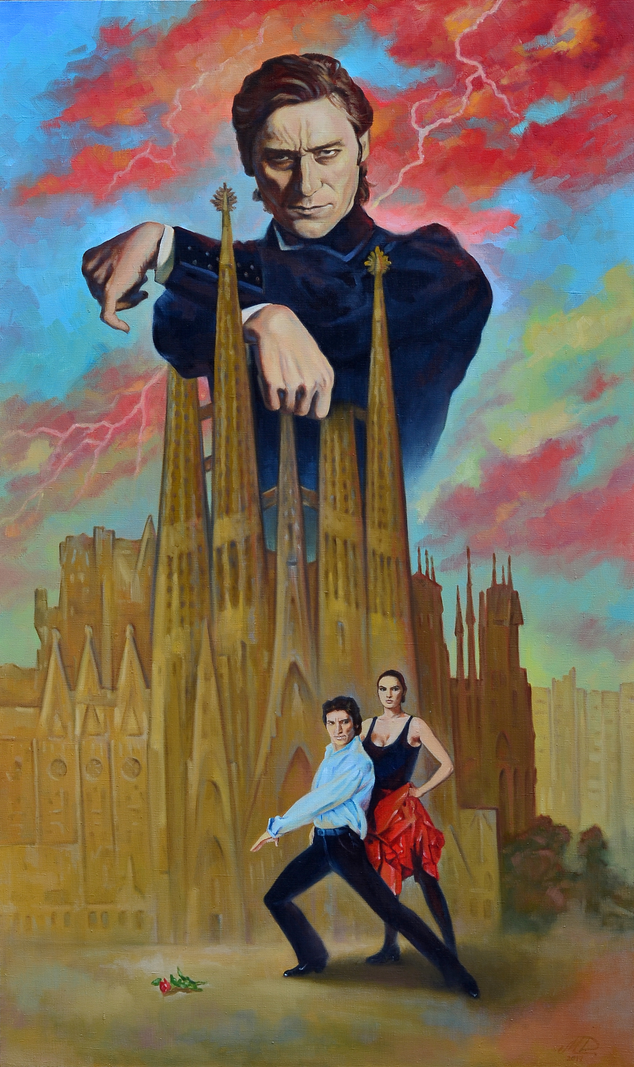 На картине изображён Великий испанский танцор Антонио Гадес.На фоне архитектуры Антонио Гауди изображён момент танца из кинофильма "Кармен". Меня заставил написать эту картину необыкновенный талант великого танцора, которого я посмотрел во многих фильмах с его участием.