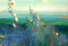 Работа «Первые лучи» отображает момент пробуждения солнца, цветка, жизни. Ощущения простора и воздуха. Проявление из тумана раннего утра мягких очертаний. Первые лучи легли на головы цветкам. А вскоре летнее солнце озарит и откроет всё вокруг, и настанет чудесный летний день.