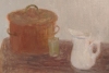 Старинная европейская медная кастрюля в натюрморте отсылает к уютным интерьерам французских кухонь. При этом, все же, это простые бытовые предметы. Диалог этих предметов в картине создаёт ощущение "тихой жизни".