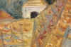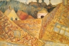 The painting is based on a sketch made directly from nature in the city of Prague. The expressive lines of the roofs create spatiality and composition.