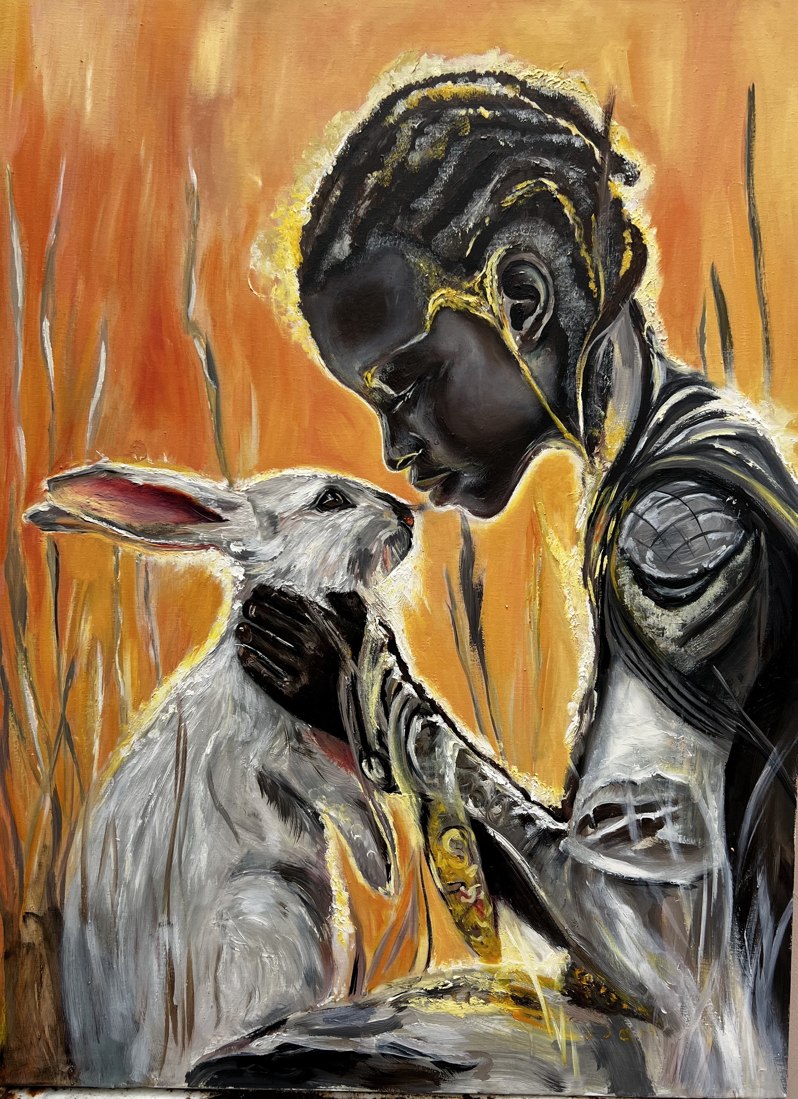 The rabbit is the Soul itself — fragile, pure, and infinite. Their meeting is not a scene but an awakening, a reflection of how deeply one can see into oneself. Some perceive tenderness here, others tension or struggle. Each vision only mirrors how open we are to our own essence.