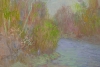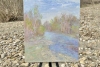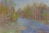 Работа написана в марте, когда лес ещё совсем прозрачный, без листвы, но уже начинают распускаться первые почки и цвести первые цветы, небо приобретает нежный светло-голубой оттенок, в воздухе чувствуется предвкушение тёплых весенних дней