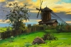 Картина написана с натуры во время пленэра в селе Нижняя Синячиха на Урале. Изображена деревянная мельница на контрасте с закатным небом. Уже рисовал эту мельницу, но здесь она вышла особенно выразительно, работа получилась с настроением. Особого драмматизма в создание картины добавляло не только уходящее солнце, но и комары, съедавшие меня тем сырым вечером. Я не мог ошибаться и медлить. Все мои действия были точными. Картина получилась живой и сочной.