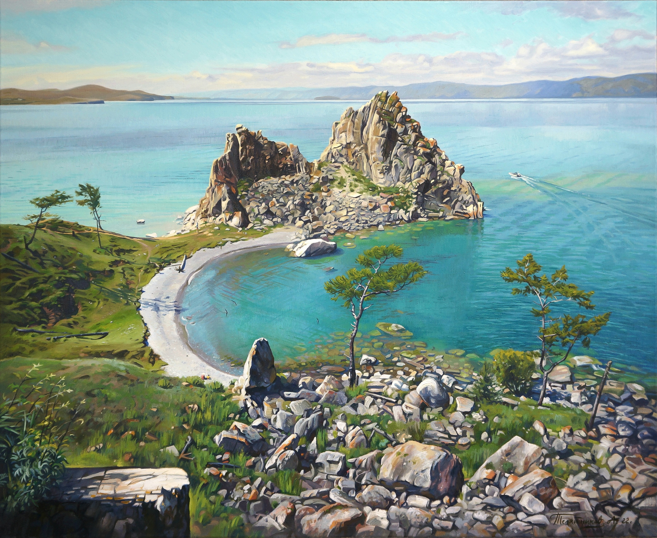 Меня всегда поражали картины художников, открывающие перед тобой целый мир пейзажа с множеством деталей. Картины, которые интересно разглядывать, постепенно погружаясь в ту реальность. И, когда передо мной открылся этот вид на острове Ольхон, то у меня родилось желание написать именно такую картину!