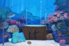 На создание этой картины меня вдохновил поход в океанариум, где подводые растения произвели на меня впечатление не меньше растений земных. Плюс морские обитатели, так изящно оживляли общую картину. Идея с сумкой пришла в рассуждениях о том, какое сокровище изобразить. Получилось актуально и с юмором. Плюс это символичная картина. Она действительно способствует богатству в доме...