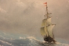 The painting by Evgeny Klyuev «Garbiy» is a captivating canvas dedicated to the eternal struggle between man and the ocean. At the center of the composition is a sailing ship proudly cutting through the waves under a heavy pre-storm sky. The artist skillfully conveys the movement and power of the element: the restless sea with crests of foam looks alive, and the wind-filled sails emphasize the ship's dynamics and perseverance.