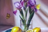 Картина написана в технике современной живописи, с использованием насыщенных красок и тщательно проработанных деталей. Автор использовал высококачественные материалы, чтобы сохранить свежесть цветов ирисов и яркость лимонов. Работа демонстрируя гармоничную композицию цветочных мотивов и фруктов, использована геометрия падающих теней. Картина идеально подходит для оформления гостиной, детской или спальни, создания атмосферы весеннего обновления и уюта.