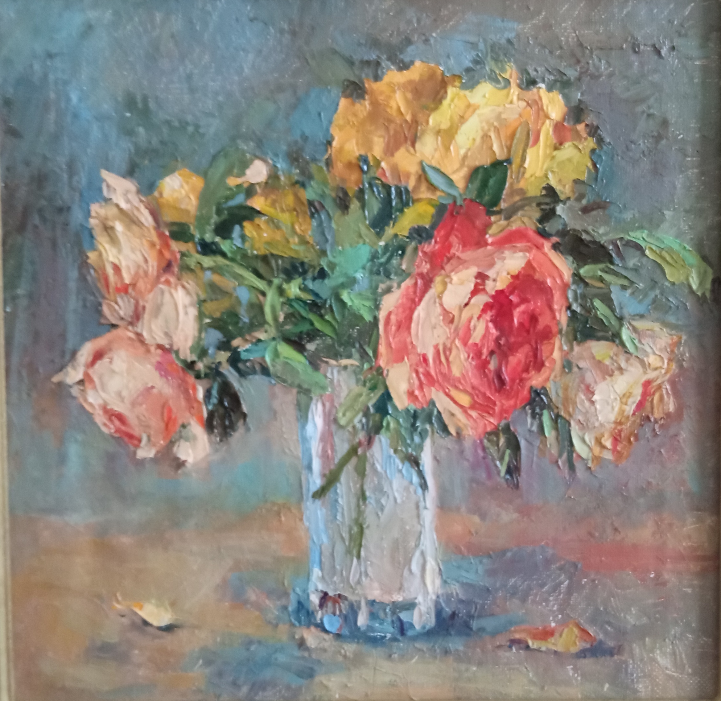 Роза стала цветком рыцарей, проливающих кровь; в трактовке философии алхимии XVI века этот цветок символизировал таинство знания и мудрость; в эпоху Возрождения символика утрачивает возвышенную сущность — поэты и художники воспевают цветок как знак земной чувственности, любви и страсти. Картина написана маслом на холсте при помощи мастихина.