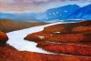 В полотне колорит построен на контрастном сочетании огненно-красных и холодных синих оттенков, создавая запоминающийся образ величественного и необъятного северного края России.