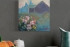 На заднем плане, окутанные таинственной дымкой, виднеются очертания строений. Их тёмные силуэты, написанные в глубоких синих и серых тонах, контрастируют с яркими цветами на переднем плане.