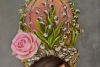 На картине изображена девушка в головном уборе, повторяющем шедевр ювелирного искусства — пасхальное яйцо Фаберже «Ландыши».
