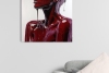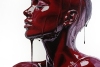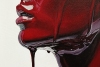 This is an amazing oil painting on canvas. It is a portrait of a young woman captured in a moment of deep sensuality. The entire figure, from the face to the shoulders, is enveloped in a thick, shiny, dark red substance that closely resembles a ripe cherry.