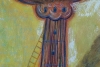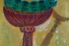 Прилепа мастерски дополняет пейзаж детализированными элементами: маленькой лестницей, ведущей на вершину гриба, и выглядывающим из травы персонажем, что создаёт ощущение завершённой, самодостаточной истории. Использование текстурного фона и каллиграфических элементов придаёт произведению налёт старины и книжной мудрости. Картина приглашает зрителя погрузиться в размышления, где границы между сном и реальностью становятся прозрачными.