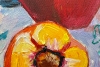 The painting «Девушка с персиками» передает атмосферу нежности и тишины. На полотне изображена юная красавица с темными волосами и глубокими темно-зелеными глазами. Перед ней — сочные, солнечные персики, символ изобилия, тепла и чувственности. В ее взгляде — мечтательность и спокойствие, словно она погружена в свои мысли и воспоминания.