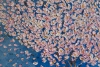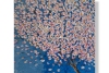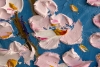 A minimalist spring composition dedicated to the moment of blooming and renewal. It depicts a cherry blossom branch with white and pink petals, lushly flowering against a clear blue sky. The space around the branch is intentionally left empty—air, light, and silence become equal protagonists of the work.