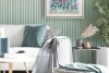 Освежает и «оживляет» интерьер: светлый голубой фон визуально расширяет пространство, делает стену воздушнее.