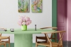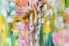 Add calm to your space with this dreamy painting of birches. Abstract and colorful, it unites nature and imagination in soft pastel tones.