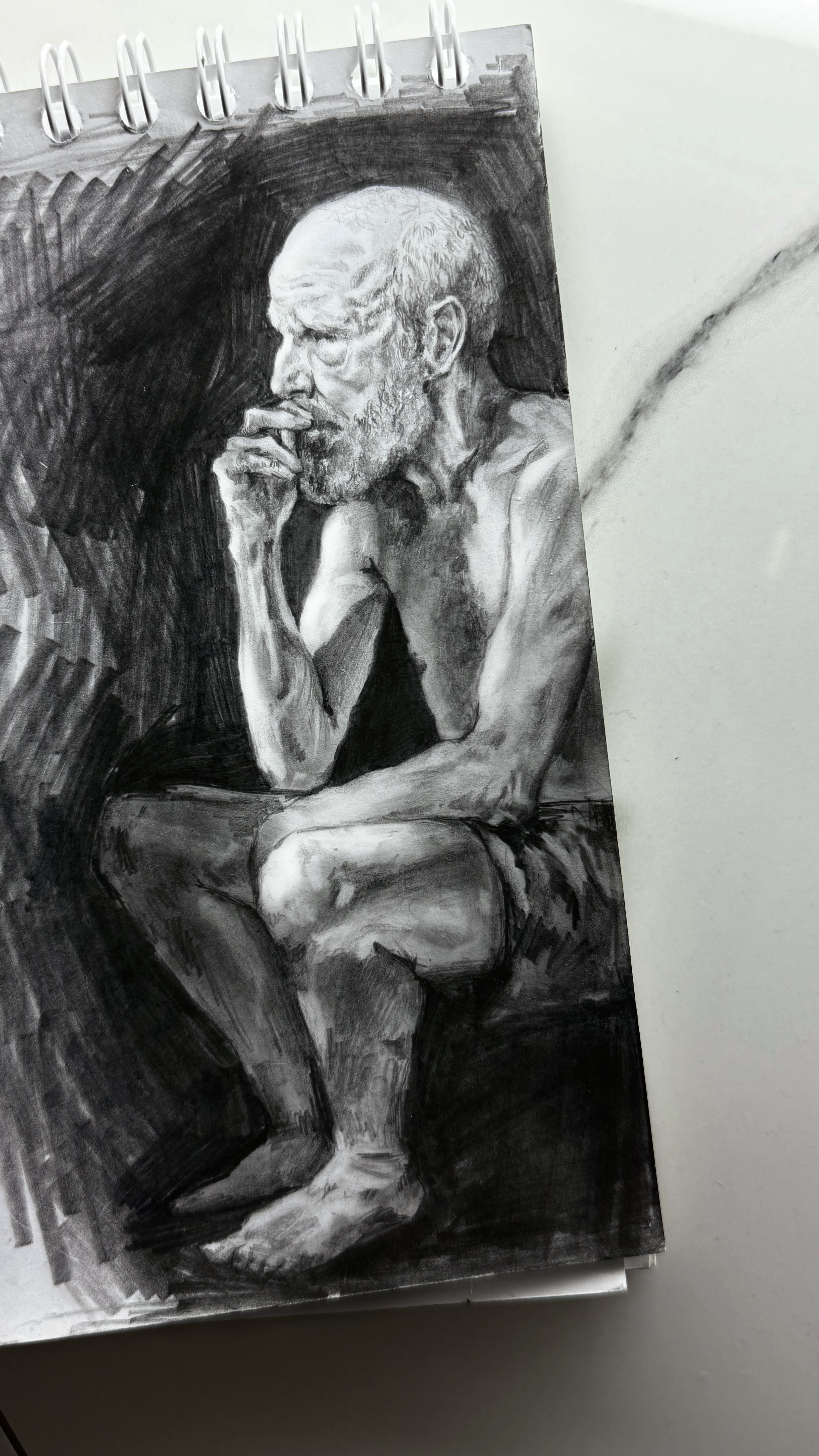 An attempt to capture the moment of reflection, a moment of inner concentration, when the body speaks of lived experience — age-related changes, accumulated fatigue, and resilience.