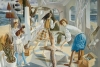 The palette of the painting is lighter and softer than in Belaya's other works, but the overall mood remains mysterious and slightly unsettling. At the center of the composition reigns a chaos of motion: the space is flooded with seagulls and other sea birds that seem to have suddenly burst inside through open windows or arches.