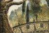 В центре композиции — изящный ажурный мост, витиеватая резьба которого передана с потрясающей детализацией. Его линии плавно изгибаются, отражаясь в спокойной воде, которая, вероятно, находится под мостом (хотя и не видна в кадре). Мост, словно сотканный из кружева, придаёт пейзажу нотку романтики и утончённости.
