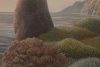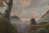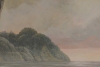 На заднем плане виднеются очертания холмов или островов, окутанных лёгкой дымкой, что придаёт картине глубину. Вся композиция пронизана меланхолией и созерцательностью. «Луна скрывается за облаками» — это не просто изображение природы, а скорее эмоциональное состояние, переданное через игру света, цвета и формы. Эта картина побуждает зрителя задуматься о течении времени, смене состояний и красоте мимолётных моментов.