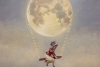 Фарфоровая дощечка, часть фарфоровой фигурки, используемая как качели, условно «прикреплена» к Луне праздничными гирляндами мерцающих звёзд. Фарфоровая фигурка изображает девочку в момент её решения спрыгнуть с качелей.
