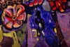 The color scheme of the painting is rich and varied: from warm golden and brown tones to deep purples and blues. The combination of contrasting colors and textures creates dynamics and draws the eye. White and golden stripes running through the entire composition may symbolize the light emanating from the candle or streams of energy.