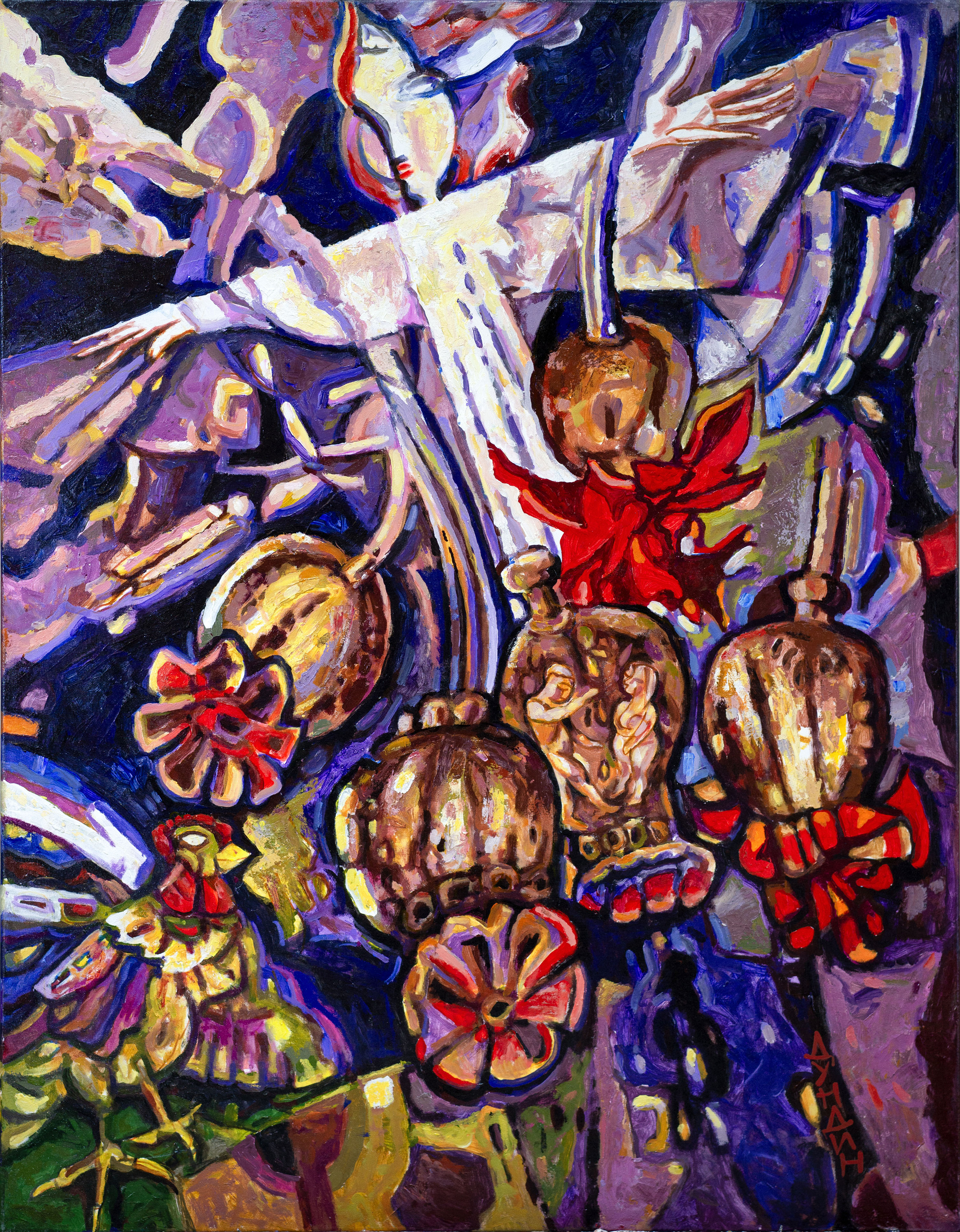 «A candle was burning on the window» is a painting that encourages reflection on the meaning of simple things, on the light capable of illuminating even the darkest corners, and on the fact that objects can carry deep meaning and memories. Dundin creates an atmosphere of mystery and intimacy, in which every object seems part of a large, enigmatic narrative.
