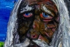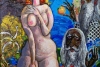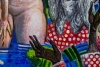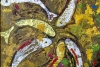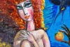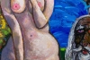 The artist uses a bold color palette and decorative elements: fish in the water, plant motifs. The work is filled with inner tension, where sensuality clashes with roughness, and mysticism with human vices.