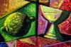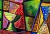 The painting by Nikolay Dundin «Чаша Сия» is a vivid and dynamic example of cubism with elements of abstraction. The central element of the composition is a stylized image of a bowl or vase, whose form is divided into geometric planes. Each plane is painted in rich contrasting colors: from deep blues and greens to fiery reds and golden shades.