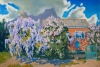 Olga Konorova's painting «Lilac and wisteria» is a true riot of colors and scents captured on canvas. The composition focuses on the lush blooming of two beautiful plants. On the left is a sprawling lilac bush, its delicate lilac, almost white blossoms creating a sense of lightness and airiness. On the right is the majestic wisteria, its long cascading clusters of flowers flowing downward like a waterfall, adding elegance and drama to the painting.